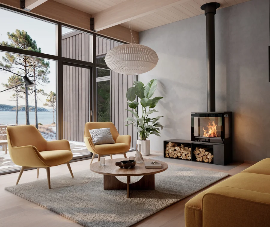 Die Doppelverglasung mit infrarotbeschichteten Keramikgläsern sorgt für eine effiziente Verbrennung und dauerhaft saubere Scheiben. Mit AIR-Anschluss ist eine raumluftunabhängige Installation möglich – ideal für Minergie- und Niedrigenergiehäuser.
