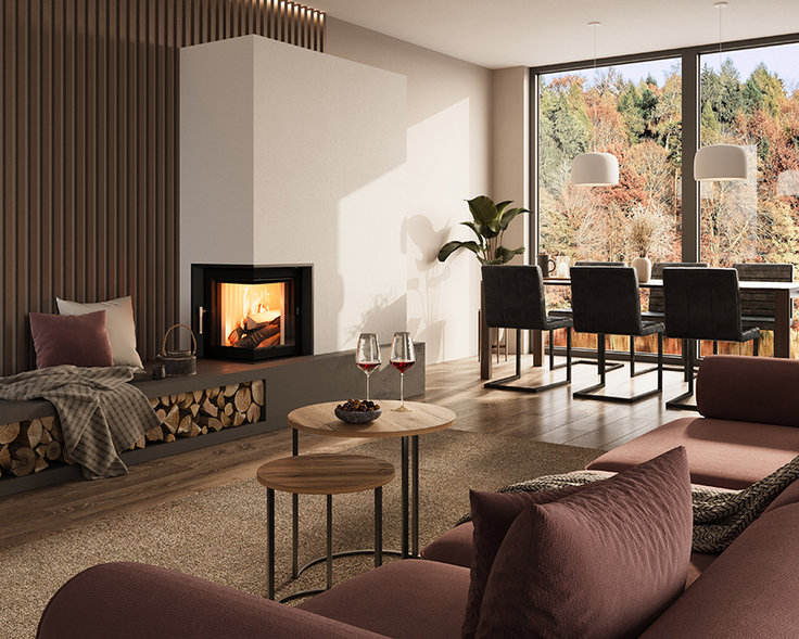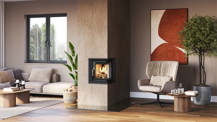 Für ein besonderes Feuererlebnis und hohe Wärmeleistung mit we- nig Platzbedarf hat Leda den kompakten Kachelofen-Heizeinsatz „Bena“ entwickelt. Er vereint dezente Optik mit beeindruckender Heizleistung. Die platzsparende Ecksicht sorgt für architektonische Raumintegration, während der große Feuerraum Scheite bis 50 Zentimeter Länge aufnimmt – ideal für alle, die ihr Holz selbst verarbeiten. Mit 15 Kilowatt zeigt der „Bena“, wie viel Heizkraft in kompakter Form stecken kann – perfekt für alle, die es effizient und leistungsstark mögen. Die erzeugte Wärme kann wahlweise in keramischen Nachheizflächen oder einem hochwertigen Guss-Nachheizkasten gespeichert werden – für lang anhaltenden Heizkomfort.