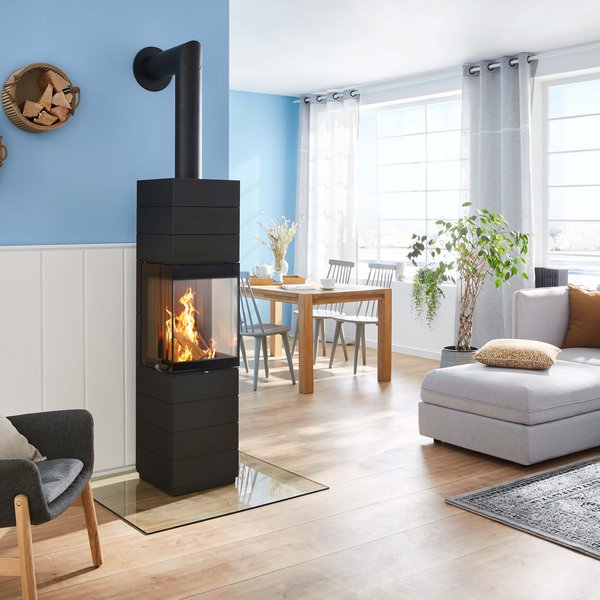 Der Gussofen CORNA PS ist mit seiner geprüften Heizleistung von 6 kW die Lösung für effizient gedämmten Wohnraum. Mit der Panoramasicht tritt das Feuer förmlich in den Raum.